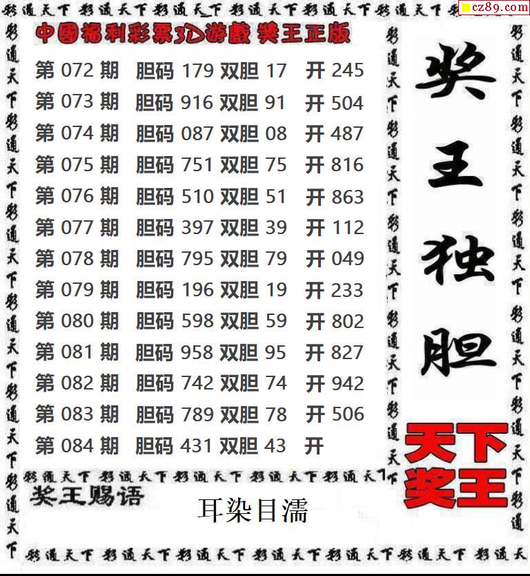天下奖王2026084期3d图谜